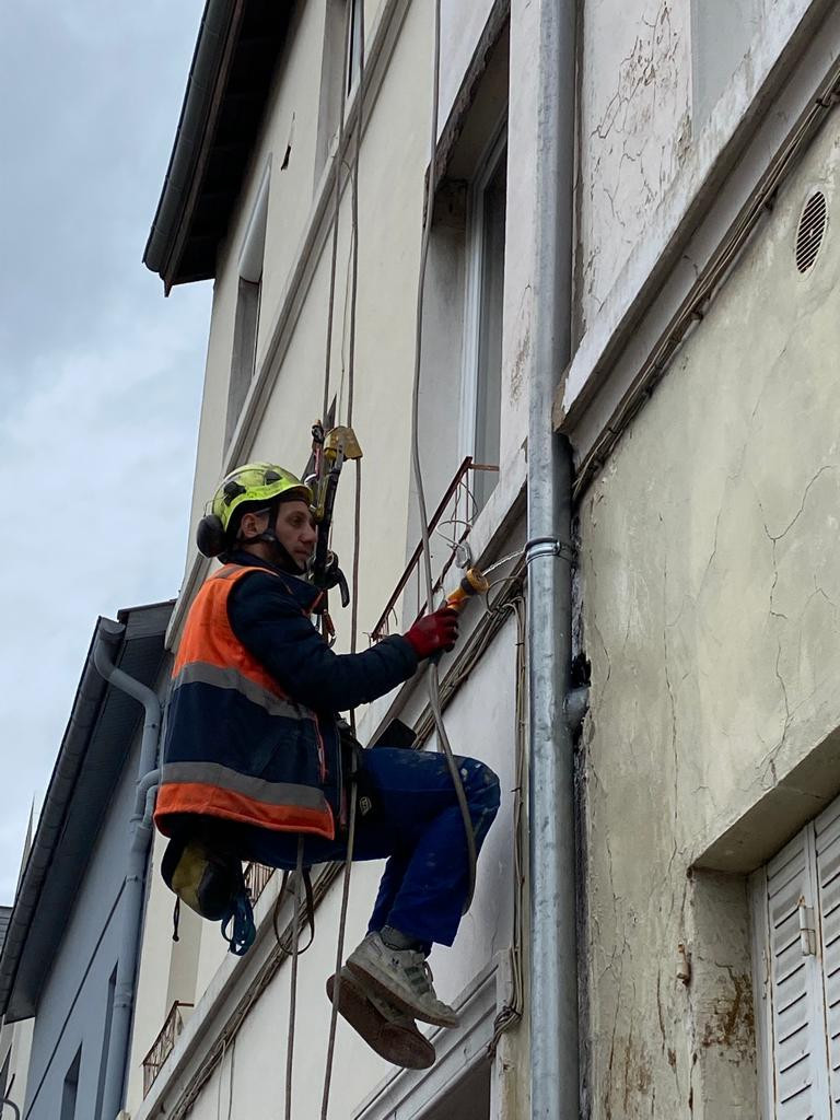 Suite à des infiltrations entre étages, notre cordiste a inspecté la façade sur toute sa hauteur. Une microfissure à peine visible a été identifiée, évitant de lourds travaux.